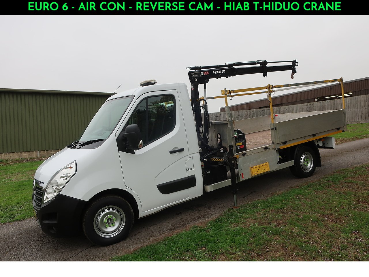 This one owner Vauxhall Movano 2.3 R3500 L3 Dropside Biturbo (130 bhp) is presented with full service history, 2 keys and features including a Hiab T-Hiduo 013 Crane, hydraulic support leg, Euro 6 Emissions(ULEZ Compliant), air conditioning, reverse assist camera, bluetooth, cruise control, electric windows & mirrors, heated mirrors, radio, CD player , aux & usb, dual passenger seat, drivers arm rest, LED roof beacon, work lights, storage box and our 5 star service package included !!!