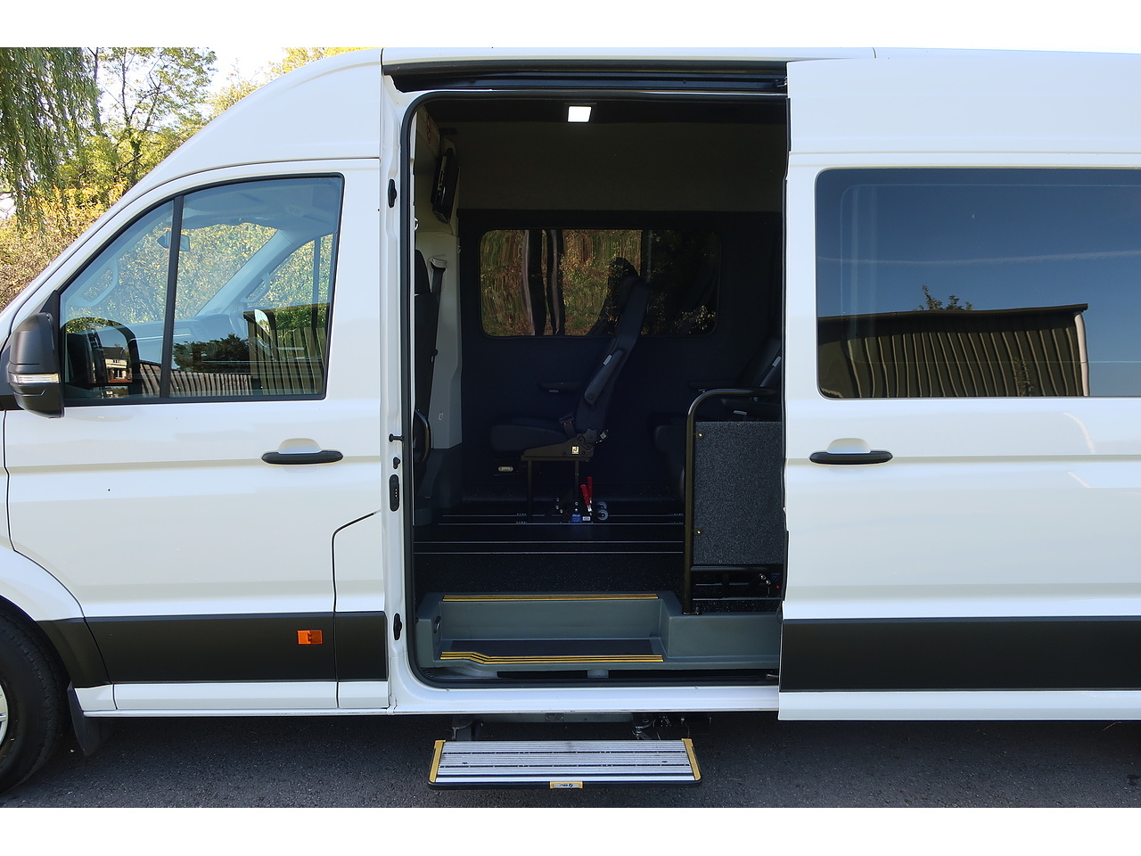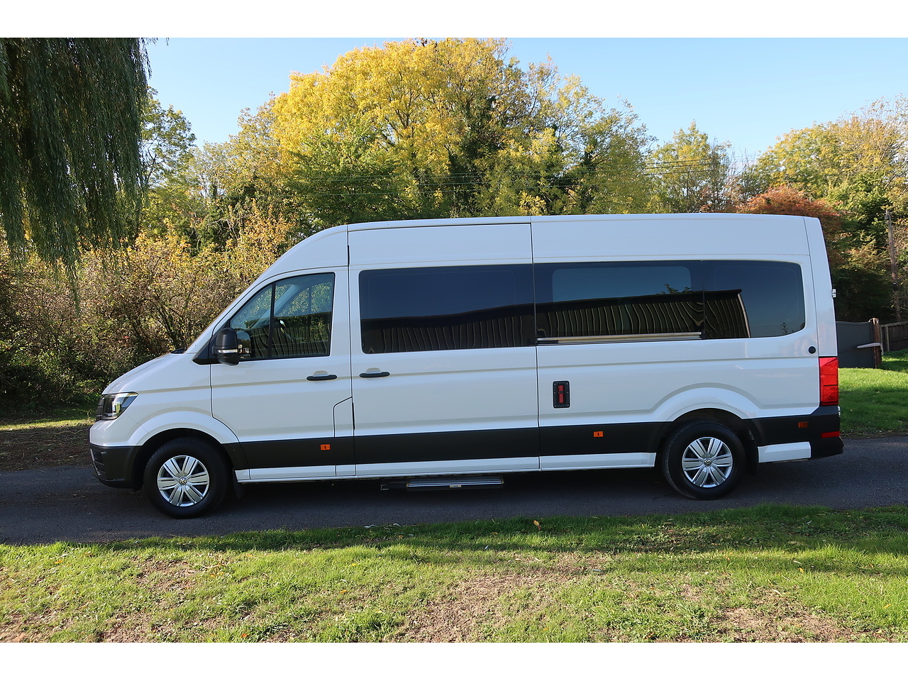 This one owner Volkswagen Crafter 2.0 TDI 35 L3 H2 Luxury Minibus FWD (140 bhp) is presented with service history, 2 keys and features including Euro 6 Emissions(ULEZ Compliant), air conditioning, reverse assist camera, front & rear parking sensors, touch screen display, apple car play, android auto, bluetooth(handsfree & media), DAB radio, multi function steering wheel, cruise control, voice control, heated windscreen, electric windows & mirrors, heated mirrors, power operated side loading door & step, 9 seats, unwin tracking(fully tracked), all rear seats quick release & movable, rear air con & heating, TV, speaker system, saloon lighting, rear storage and our 5 star service package included !!!